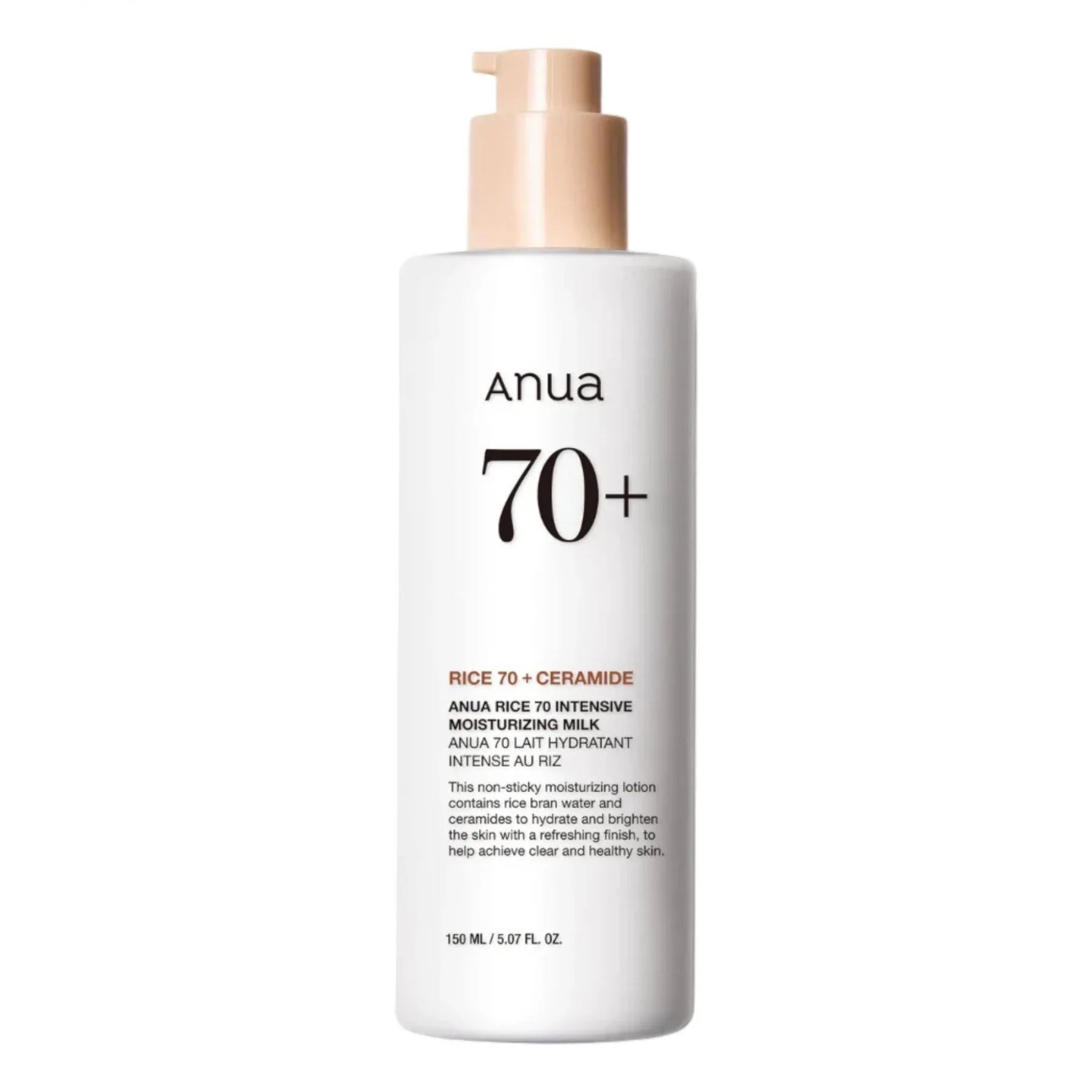 - Anua Rice 70 Intensive Moisturizing Milk a lightweight moisturizing lotion formulated with Rice Bran Water and Niacinamide to help enhance skin clarity and balance, while brightening dull complexion.