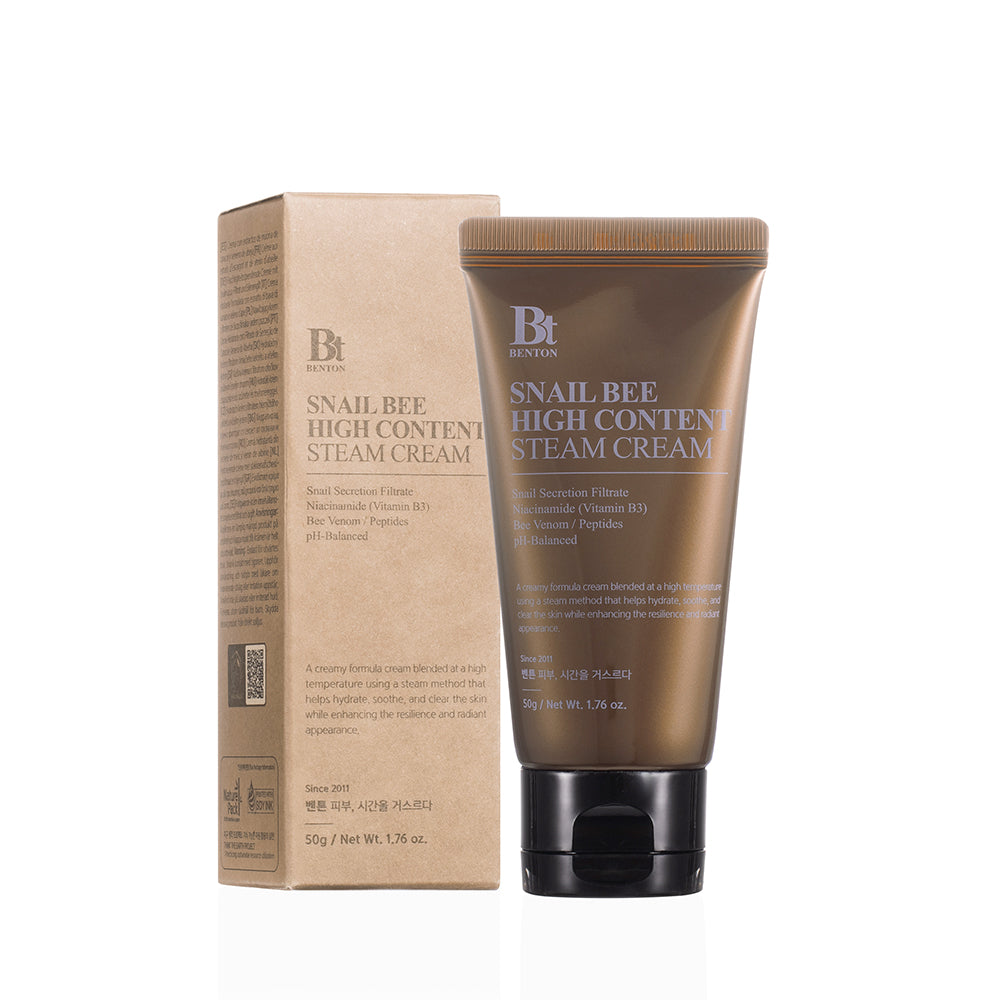 Benton Snail Bee High Content Steam Cream is a rich moisturizing cream crafted with snail secretion filtrate and bee venom to repair, hydrate, and soothe skin. Using a special steam method for blending, this cream delivers deep nourishment while supporting a clearer, healthier complexion.