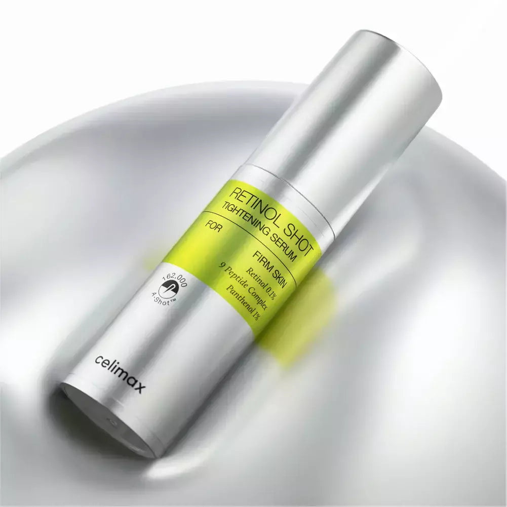 The Celimax Vita-A Retinal Shot Tightening Booster offers a more potent form of Vitamin A than retinol, helping firm the skin, smooth wrinkles, and boost elasticity with minimal irritation.