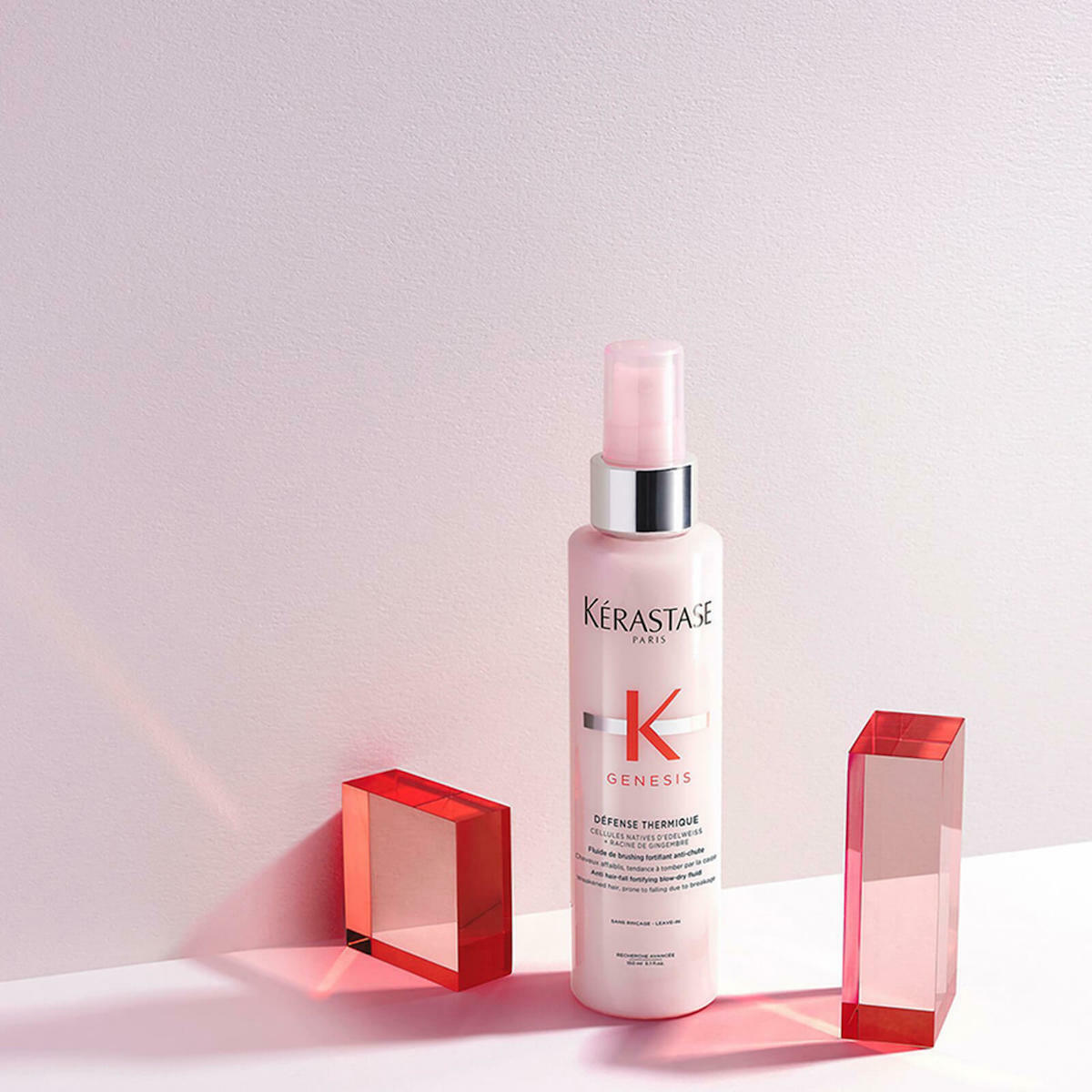 Kerastase Genesis Defense Thermique is a nourishing and fortifying blow-dry spray for weakened hair, prone to breakage. Prevents split ends with its ultra-strengthening formula equipped with anti-breakage action and heat protection up to 230°C. Boosts shine and an irresistable silk-to-touch finish with its 24H hydrating shield against frizz.