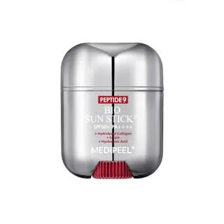 MEDI-PEEL Peptide 9 Bio Sun Stick Pro, a moisturizing chemical sun stick formulated with 9 kinds of Hyaluronic Acids to deeply hydrate skin and strengthen the skin barrier, while offering UV protection with broad spectrum SPF50+ PA++++.