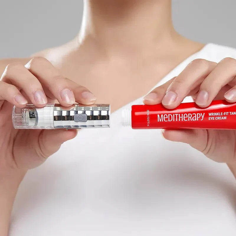 Experience the ultimate solution for under-eye concerns with the Meditherapy Wrinkle-Fit Tangle Eye Cream. This innovative 2-in-1 device combines a potent eye cream with a massaging applicator, delivering targeted care to reduce puffiness, dark circles, and wrinkles around the delicate eye area. Clinically validated to reduce under-eye sagging by 18.7% after just two weeks of use.
