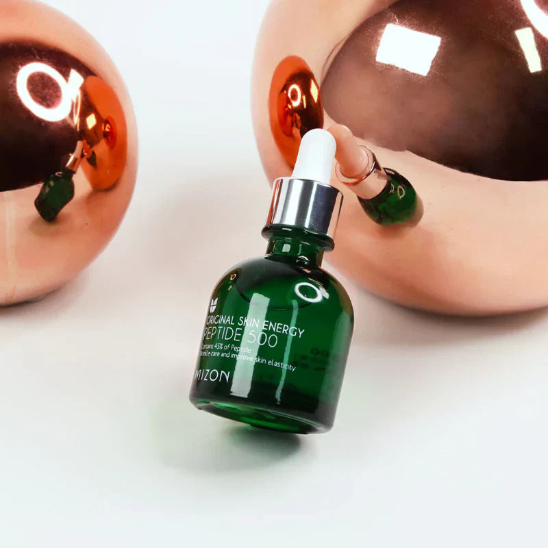 Mizon Peptide 500 Serum 30ml is an anti-aging serum formulated to improve skin elasticity, reduce the appearance of fine lines, and strengthen the skin barrier. Enriched with 500 types of peptides, hyaluronic acid, and niacinamide, it promotes smoother, firmer, and more radiant skin.