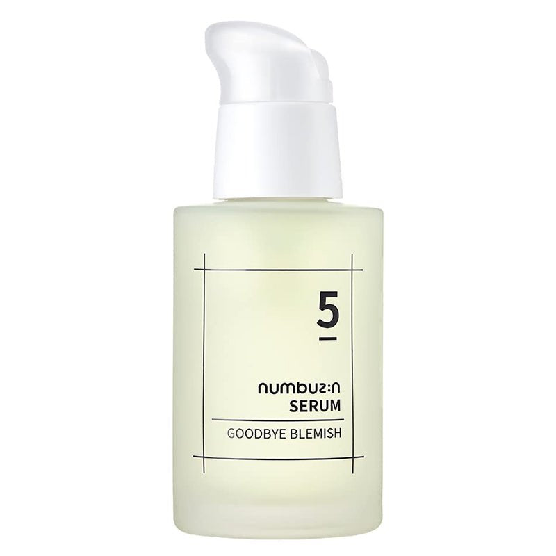 he Numbuzin No.5 Goodbye Blemish Serum is a targeted treatment serum that helps to fade blemishes and even out skin tone. Formulated with niacinamide, turmeric root extract, licorice root extract, and various vitamin C derivatives, it brightens and clarifies the skin.